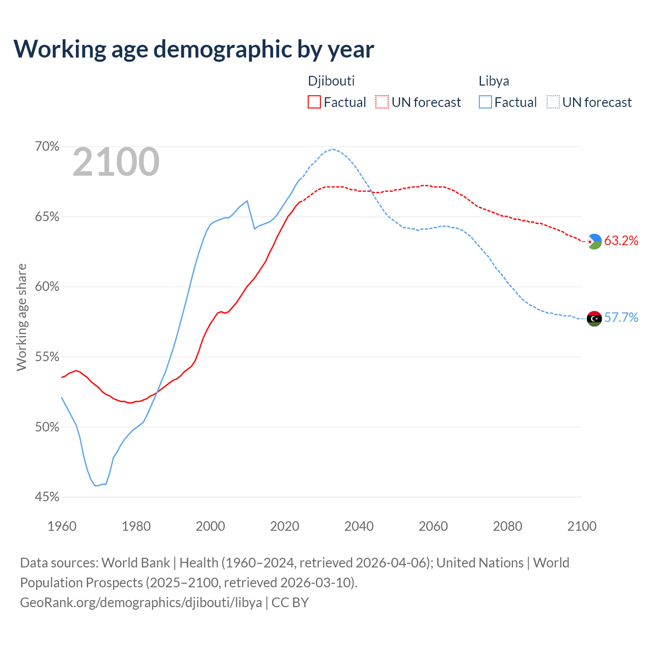 - Djibouti has 794K working age adults (aged 15-64) vs 5.11M in Libya.