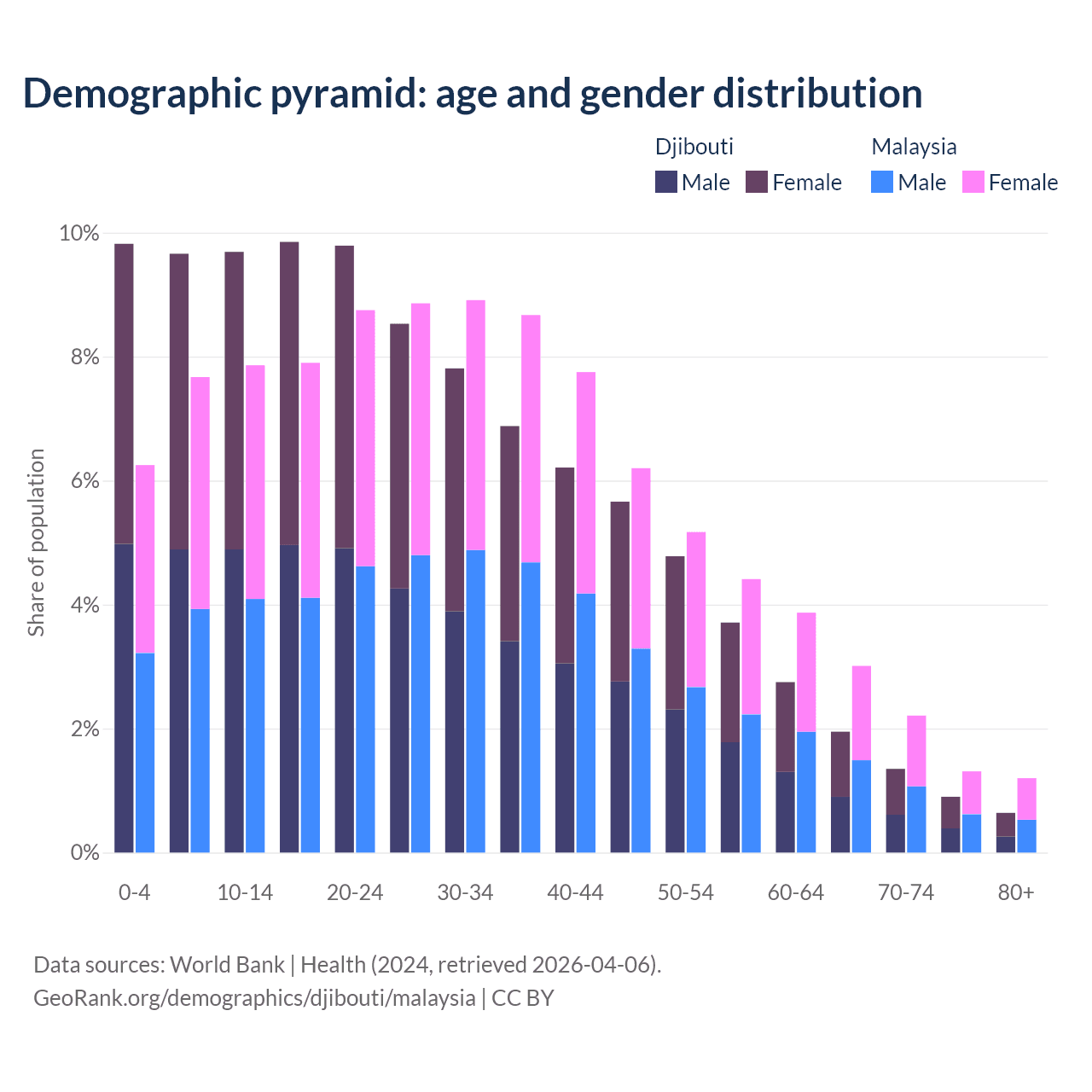 Demographics of Djibouti compared to Malaysia: