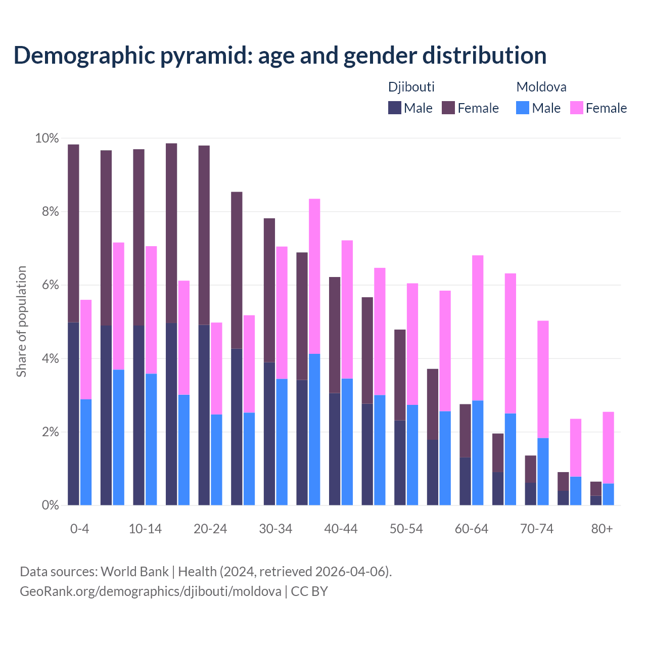 Demographics of Djibouti compared to Moldova: