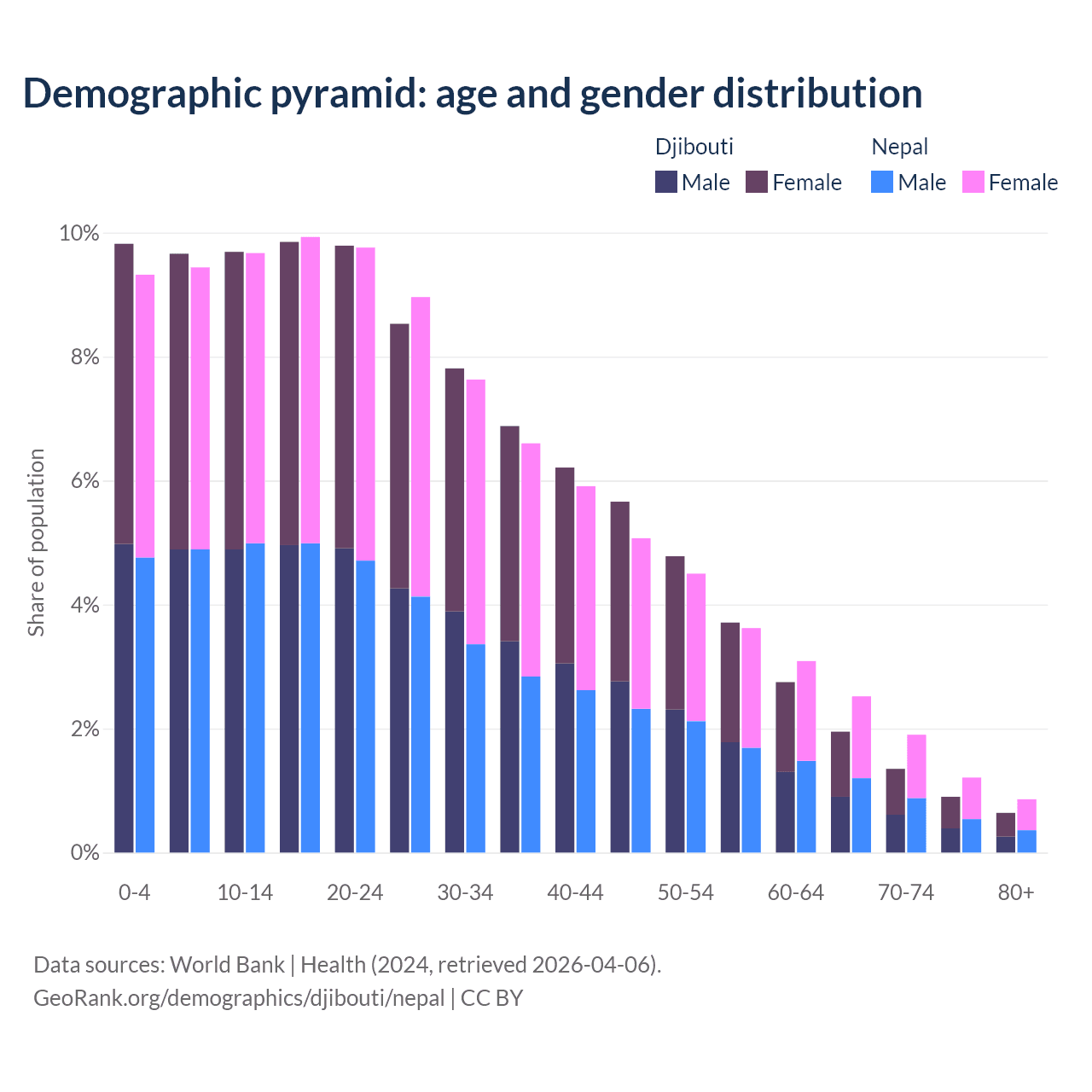 Demographics of Djibouti compared to Nepal: