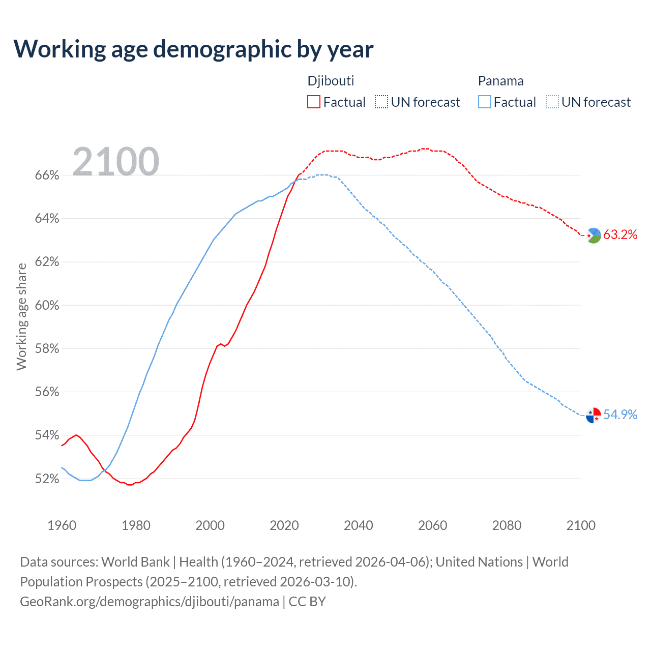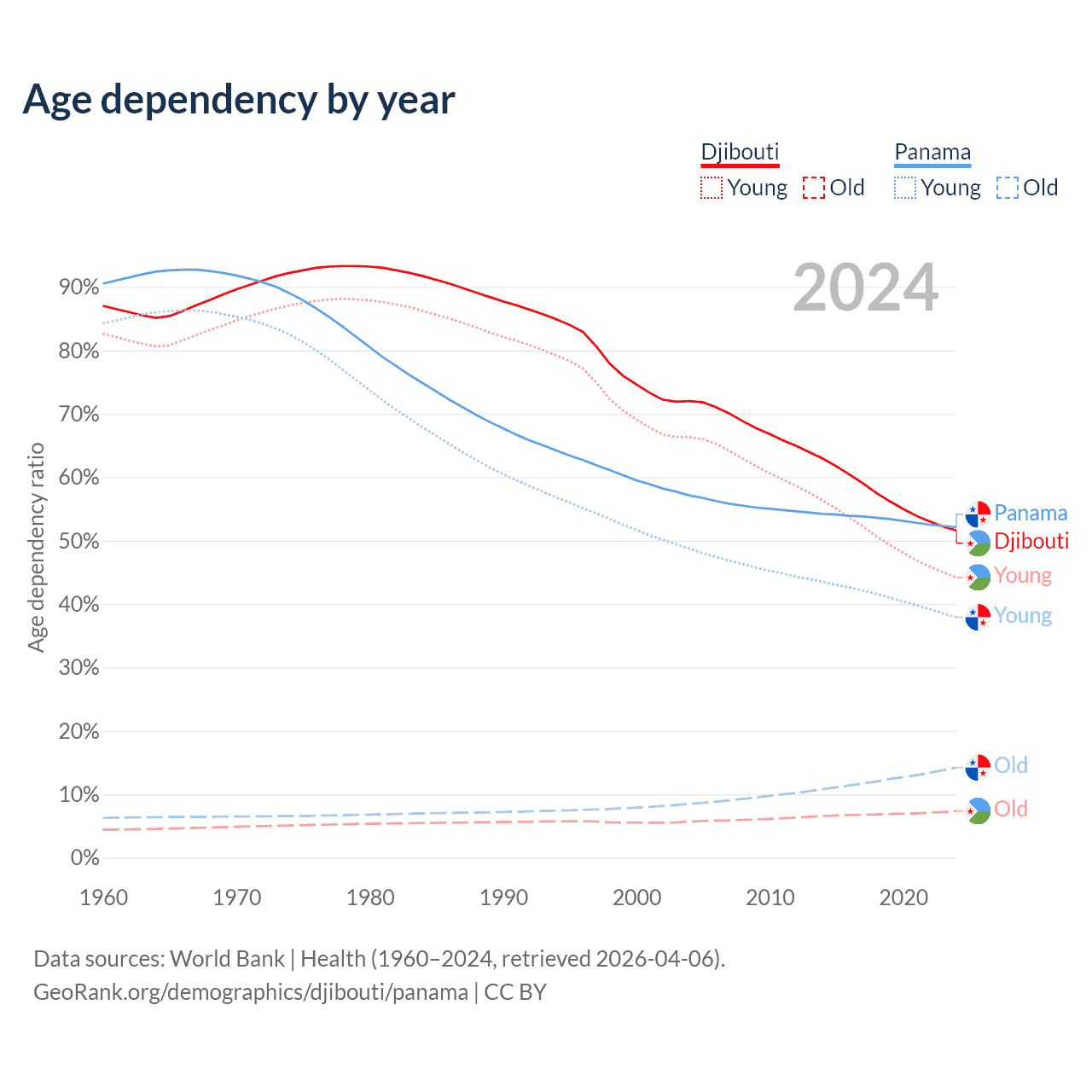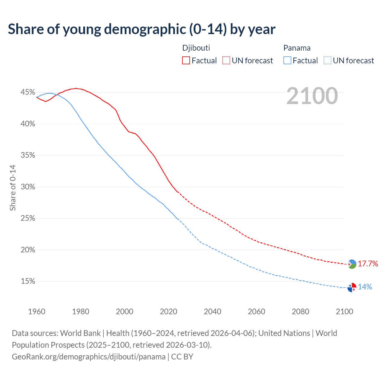 - The share of young demographic (0-15 years old) in Djibouti is 29.2% vs 24.9% in Panama.