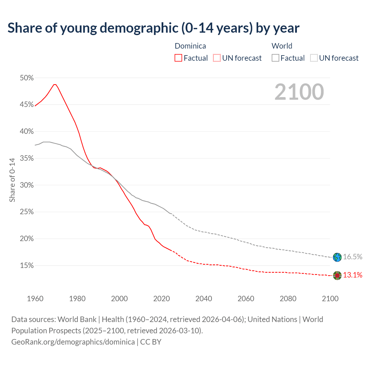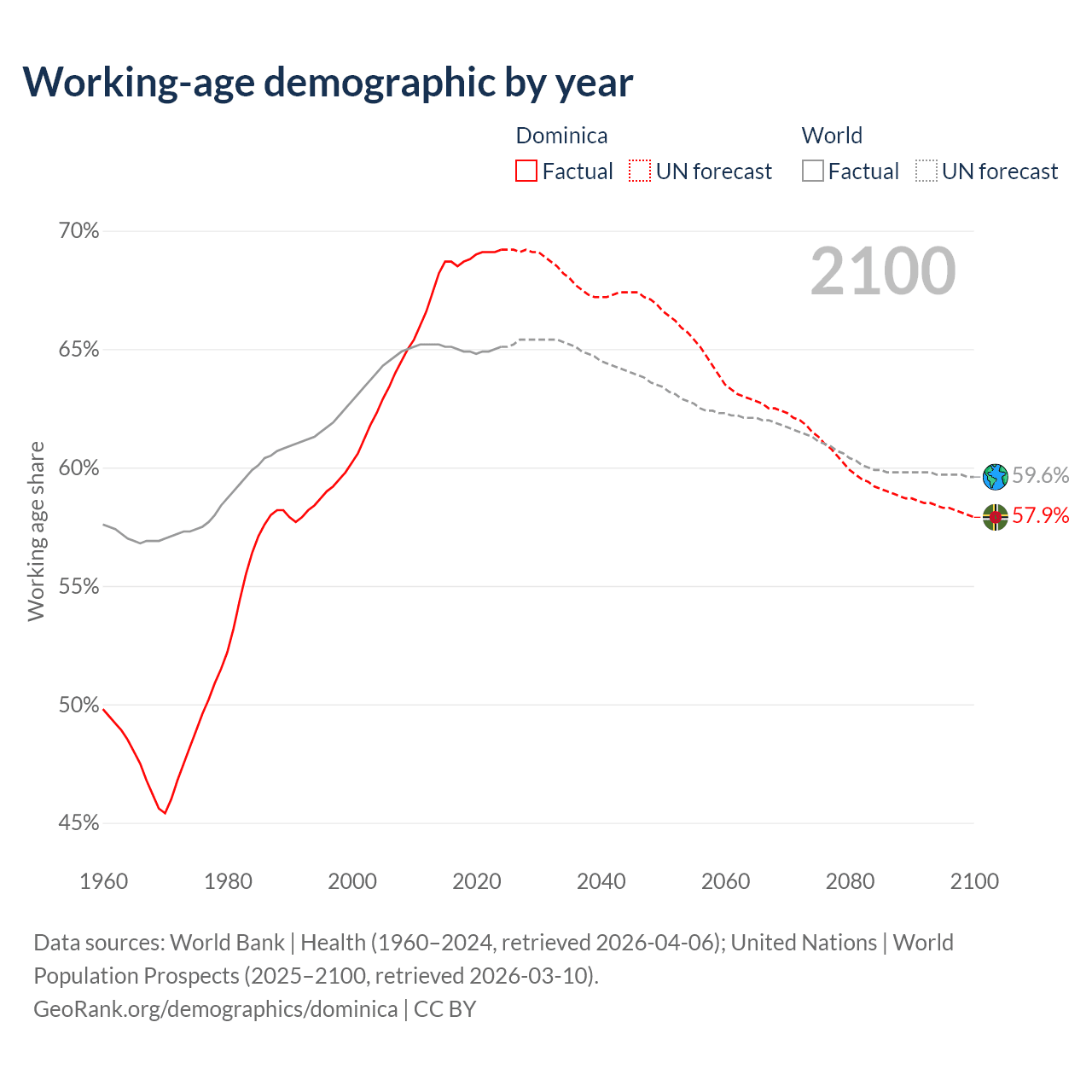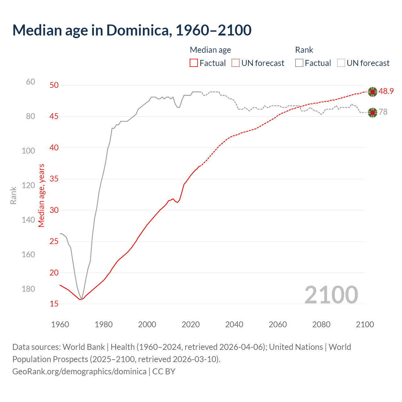 Median age in Dominica, 1960–2100