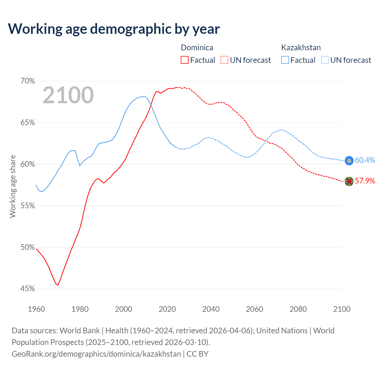 - Dominica has 45.3K working age adults (aged 15-64) vs 13.1M in Kazakhstan.