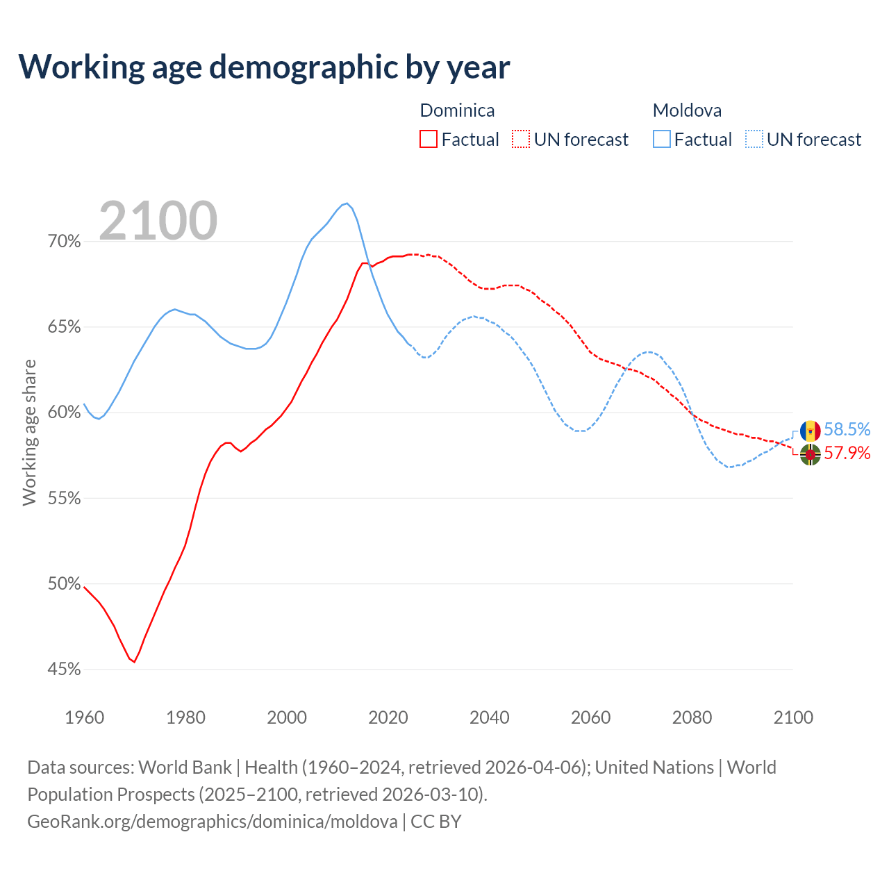 - Dominica has 45.3K working age adults (aged 15-64) vs 1.5M in Moldova.