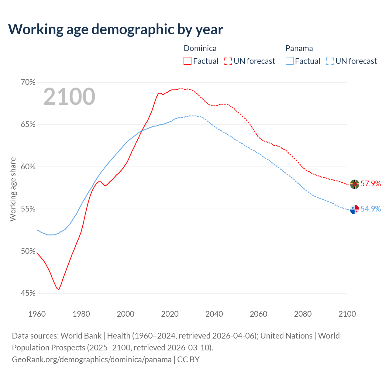 - Dominica has 45.3K working age adults (aged 15-64) vs 3.05M in Panama.