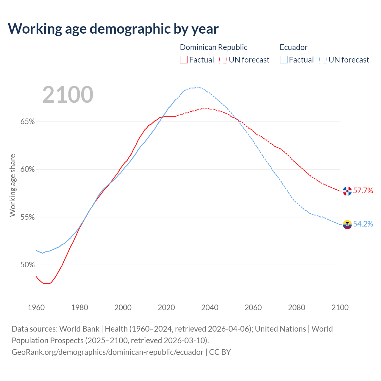 - The Dominican Republic has 7.63M working age adults (aged 15-64) vs 12.4M in Ecuador.
