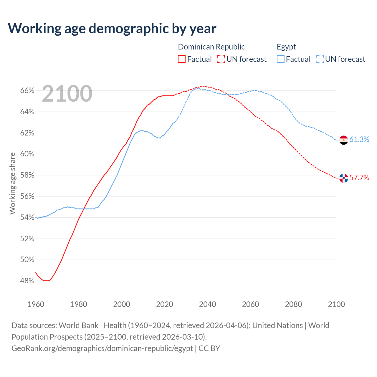 - The Dominican Republic has 7.63M working age adults (aged 15-64) vs 75.9M in Egypt.