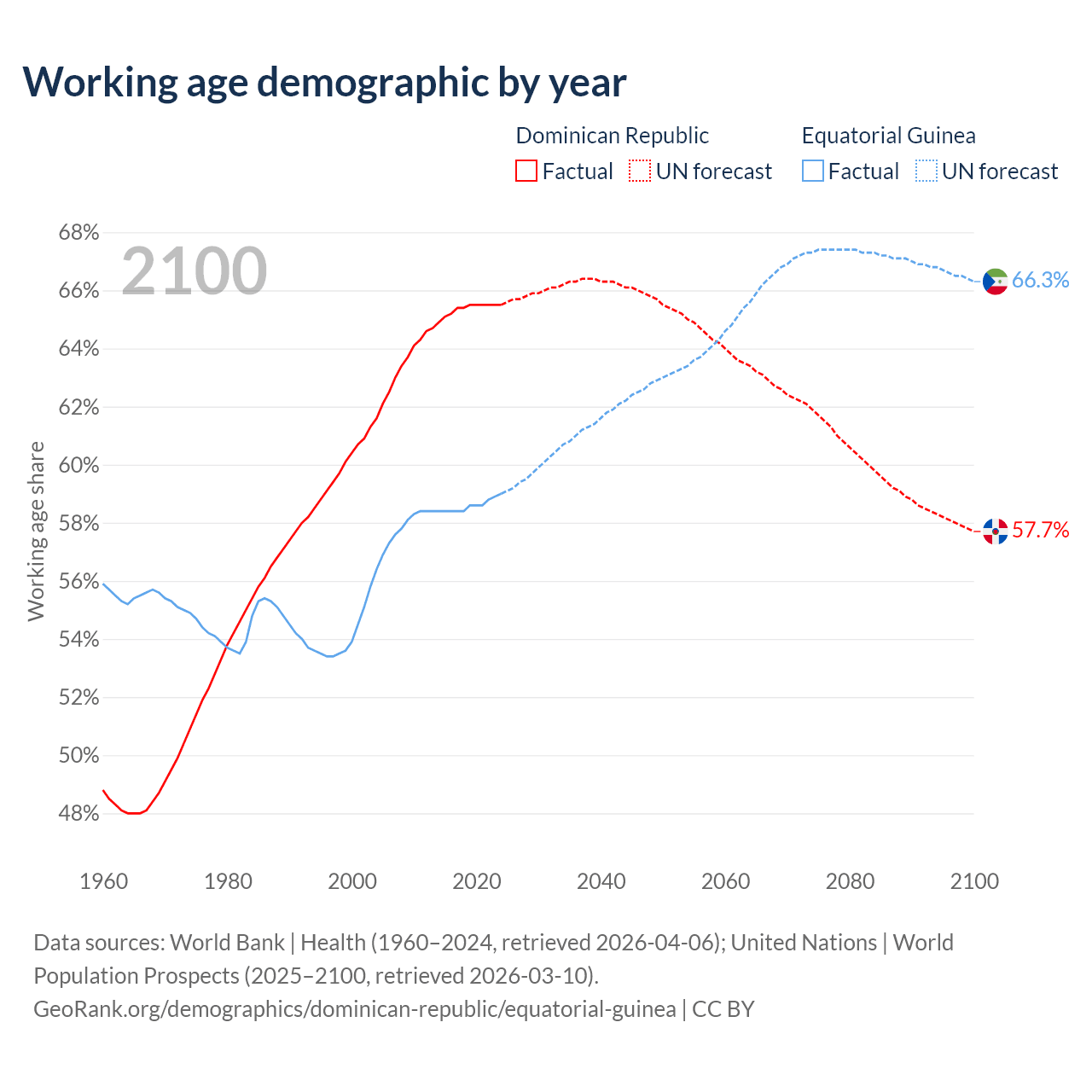 - The Dominican Republic has 7.63M working age adults (aged 15-64) vs 1.18M in Equatorial Guinea.