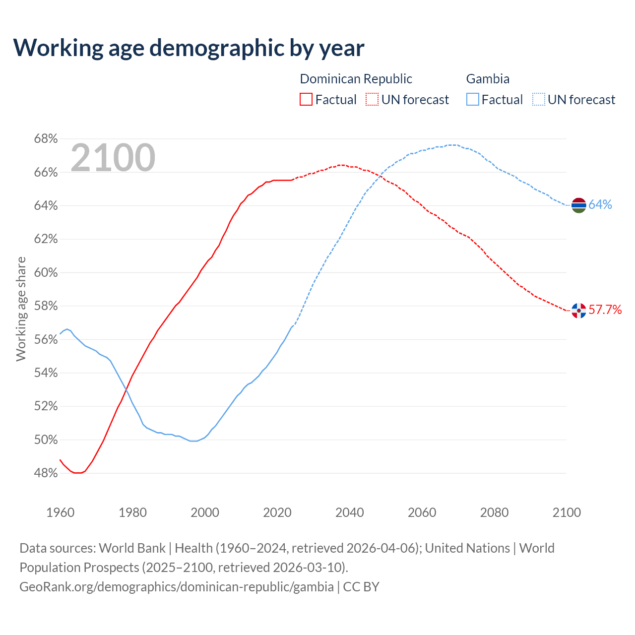 - The Dominican Republic has 7.63M working age adults (aged 15-64) vs 1.64M in the Gambia.