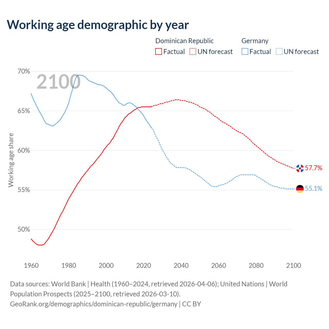 - The Dominican Republic has 7.63M working age adults (aged 15-64) vs 51.9M in Germany.
