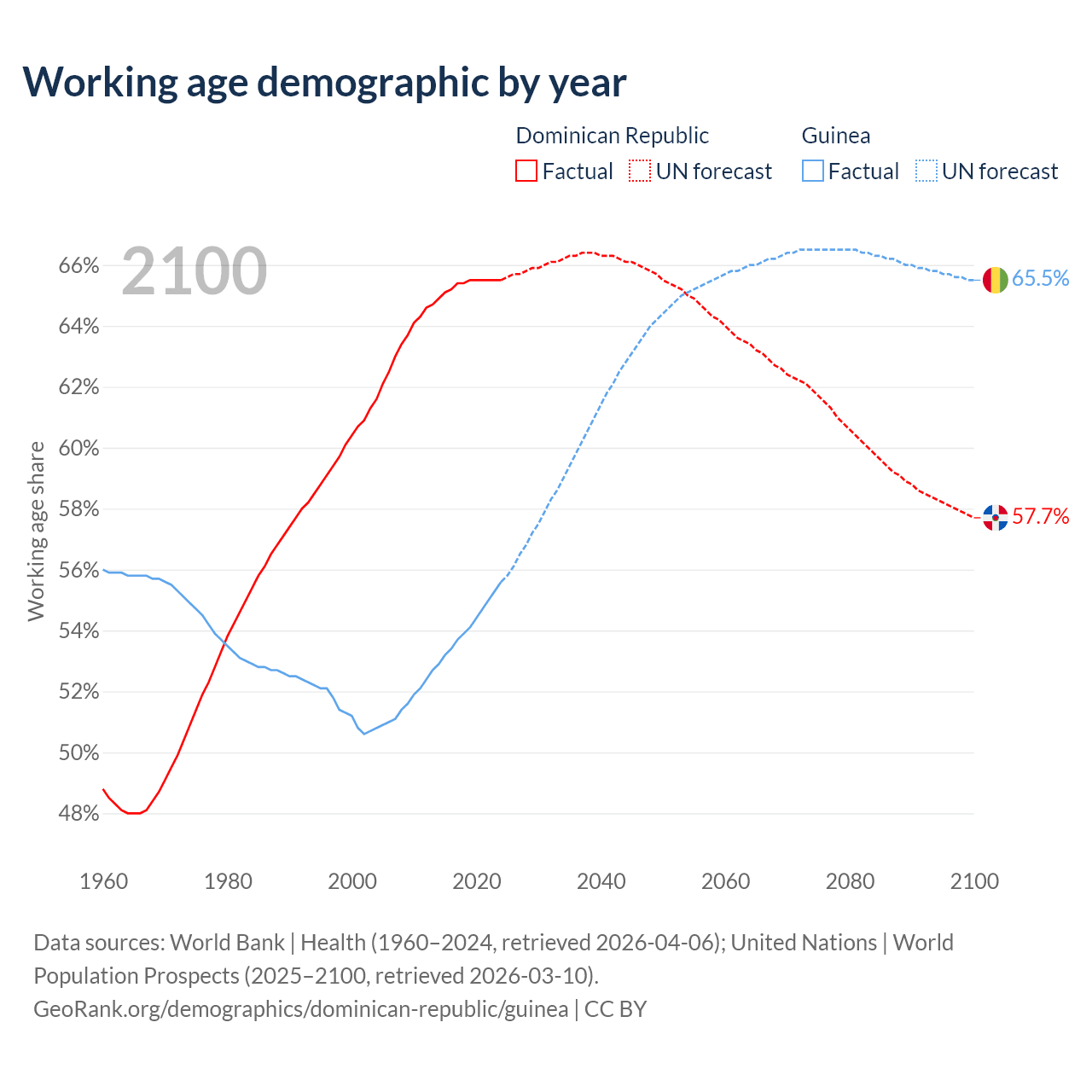 - The Dominican Republic has 7.63M working age adults (aged 15-64) vs 8.65M in Guinea.