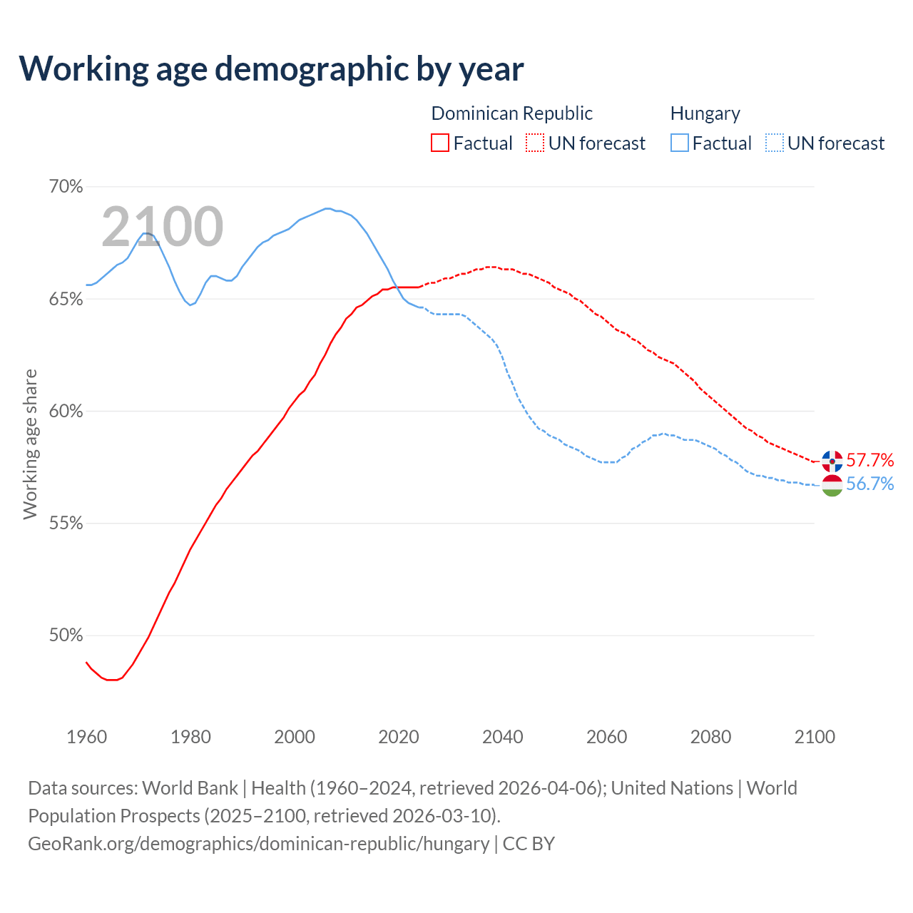 - The Dominican Republic has 7.63M working age adults (aged 15-64) vs 6.12M in Hungary.