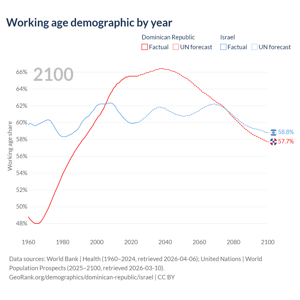 - The Dominican Republic has 7.63M working age adults (aged 15-64) vs 6.18M in Israel.