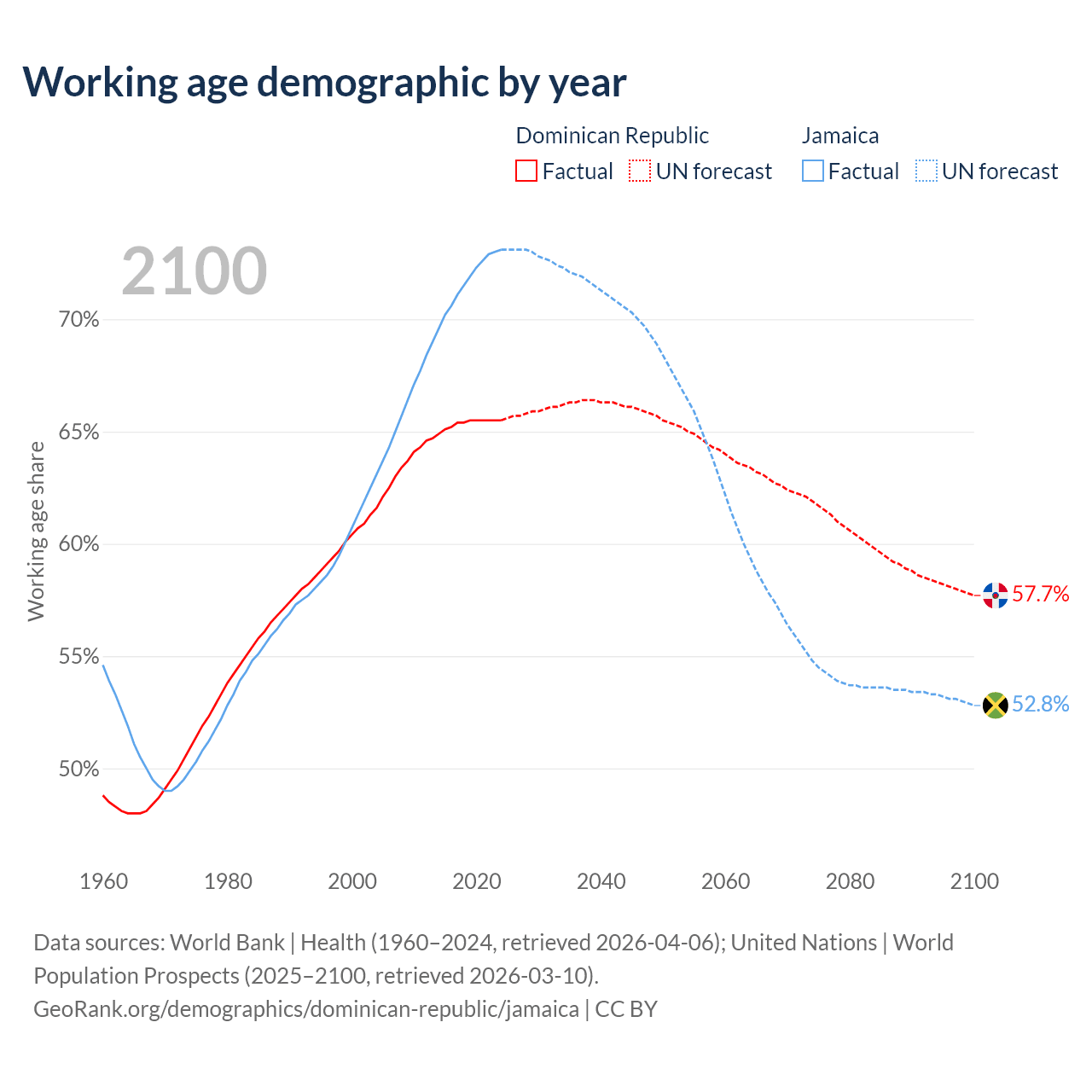 - The Dominican Republic has 7.63M working age adults (aged 15-64) vs 2.07M in Jamaica.