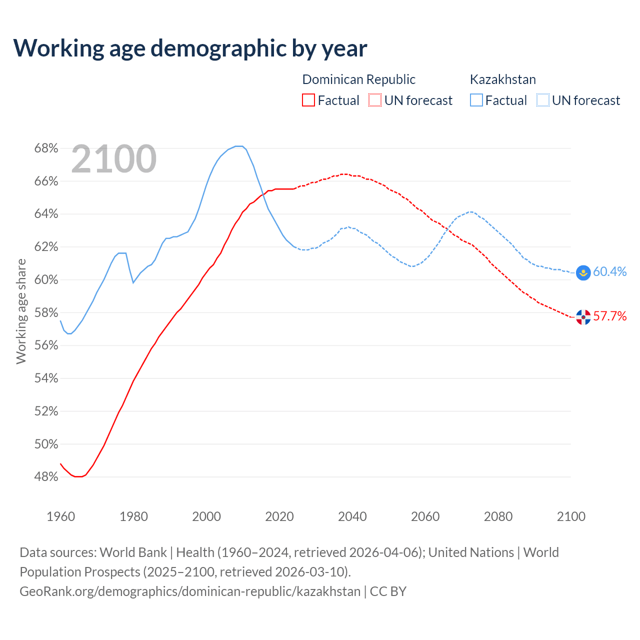 - The Dominican Republic has 7.63M working age adults (aged 15-64) vs 13.1M in Kazakhstan.