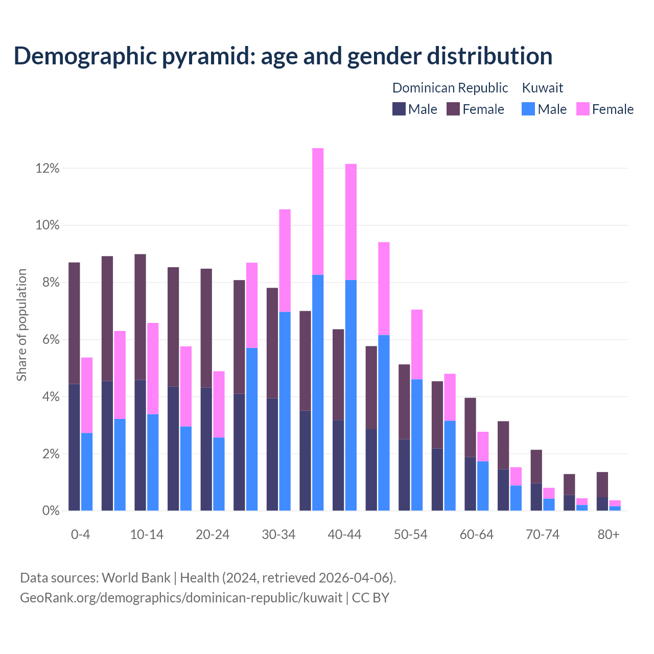 - The share of old-age demographic (65+) in the Dominican Republic is 7.88% vs 3.1% in Kuwait.