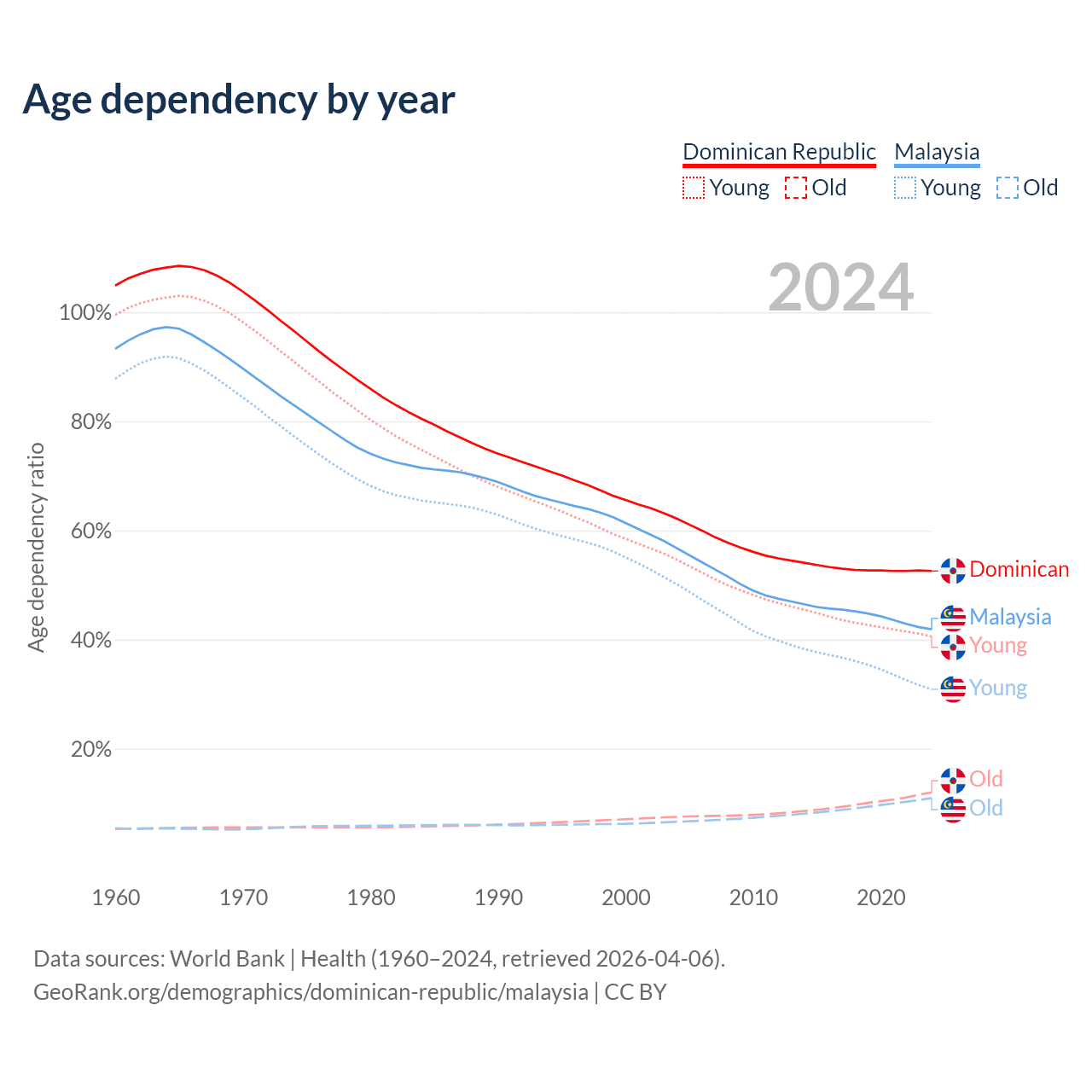 - The Dominican Republic is ranked 112/196 by median age (oldest to youngest) vs 92/196 for Malaysia.