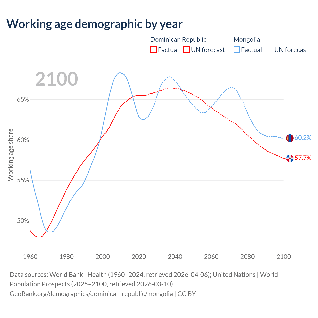 - The Dominican Republic has 7.63M working age adults (aged 15-64) vs 2.27M in Mongolia.