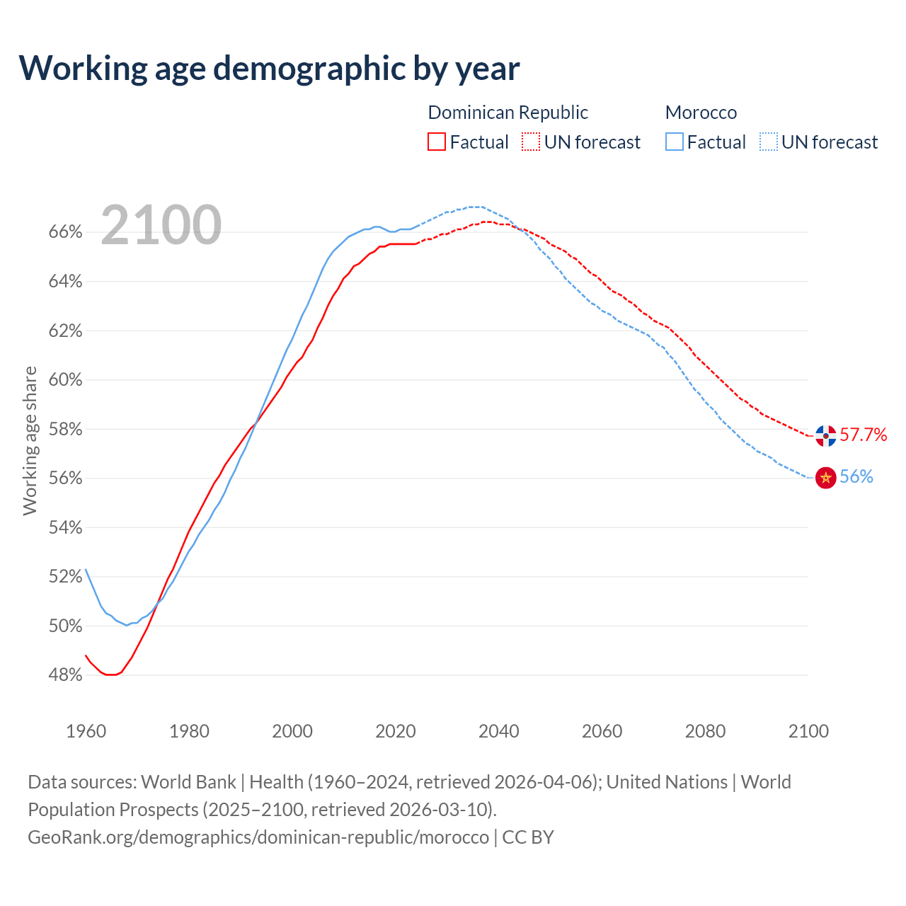 - The Dominican Republic has 7.63M working age adults (aged 15-64) vs 25.7M in Morocco.