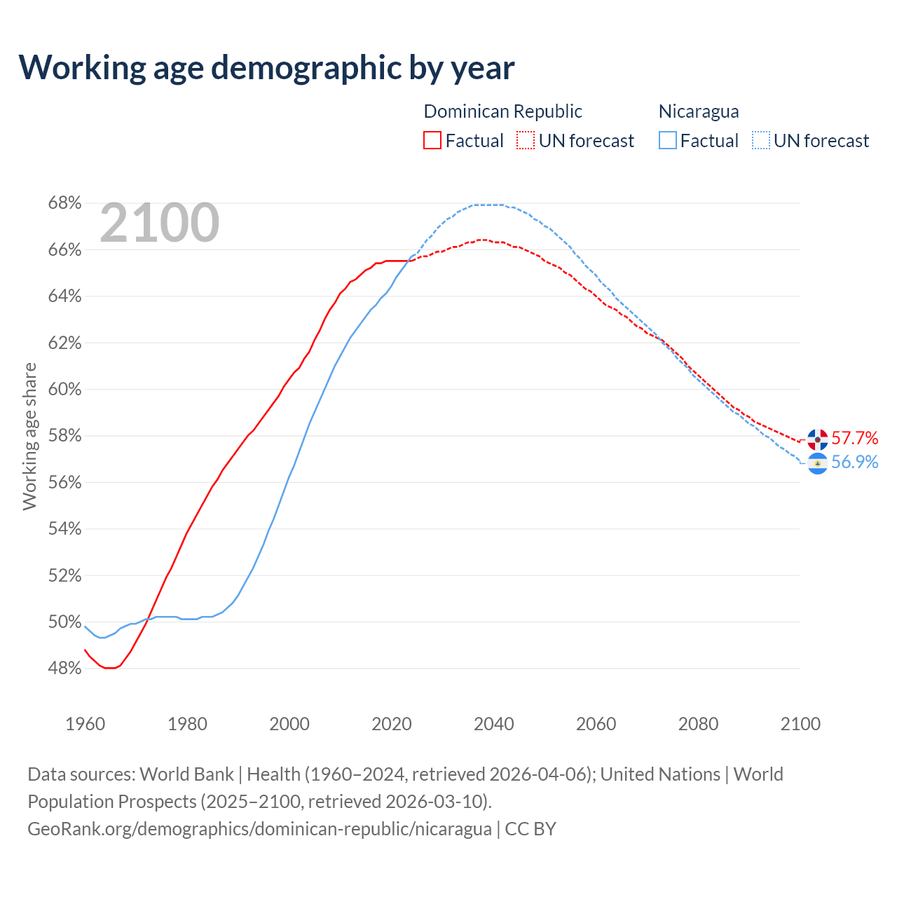 - The Dominican Republic has 7.63M working age adults (aged 15-64) vs 4.68M in Nicaragua.