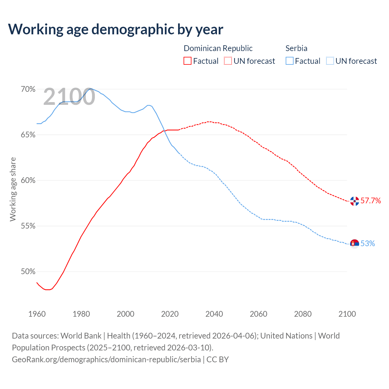 - The Dominican Republic has 7.63M working age adults (aged 15-64) vs 4.09M in Serbia.