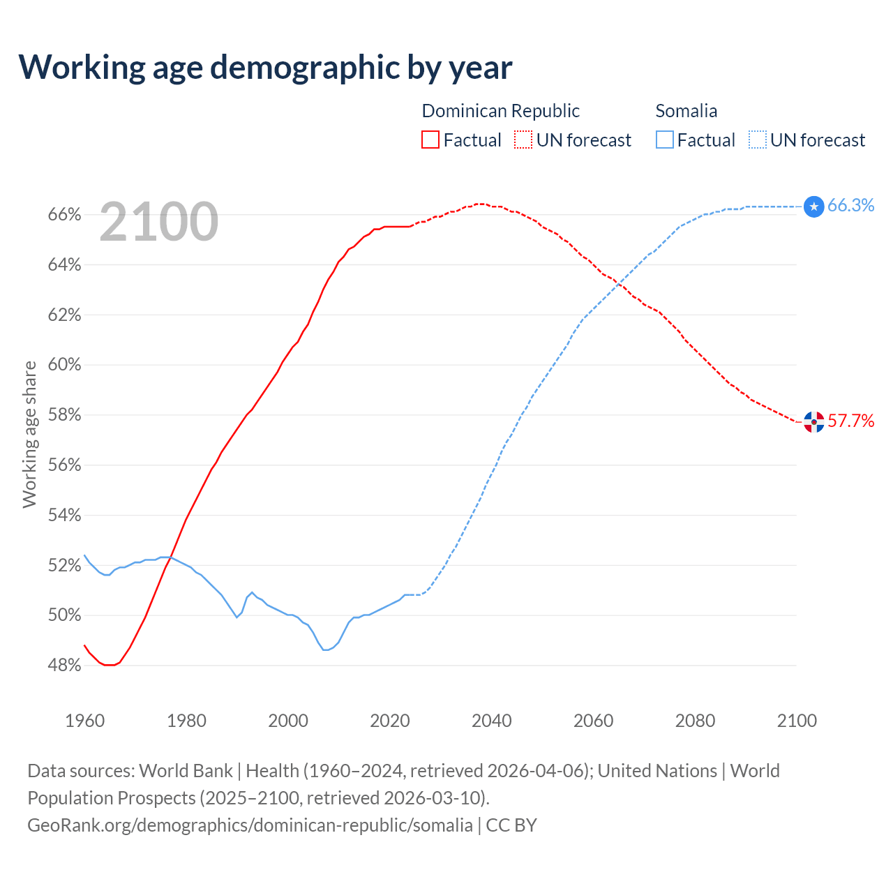 - The Dominican Republic has 7.63M working age adults (aged 15-64) vs 10.4M in Somalia.