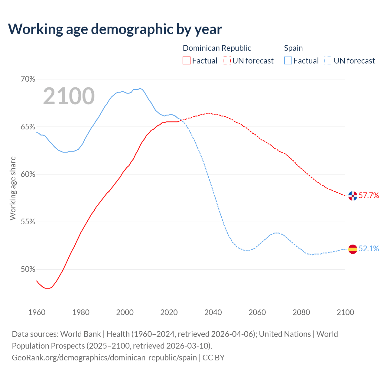 - The Dominican Republic has 7.63M working age adults (aged 15-64) vs 32.2M in Spain.
