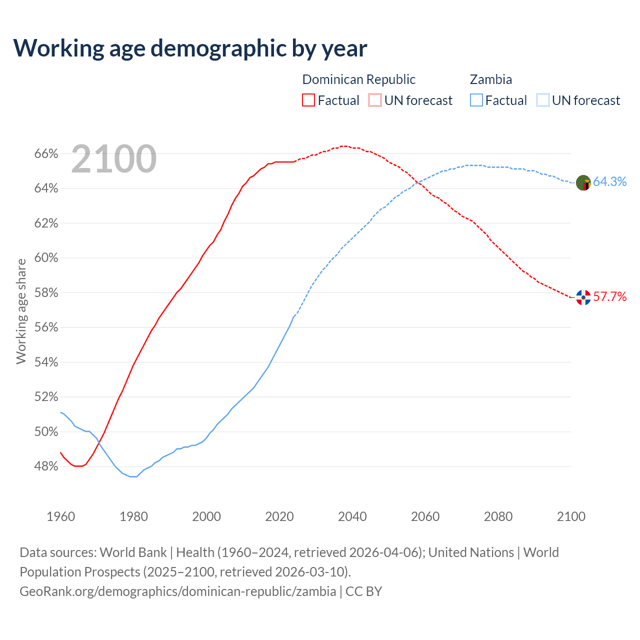 - The Dominican Republic has 7.63M working age adults (aged 15-64) vs 12.8M in Zambia.