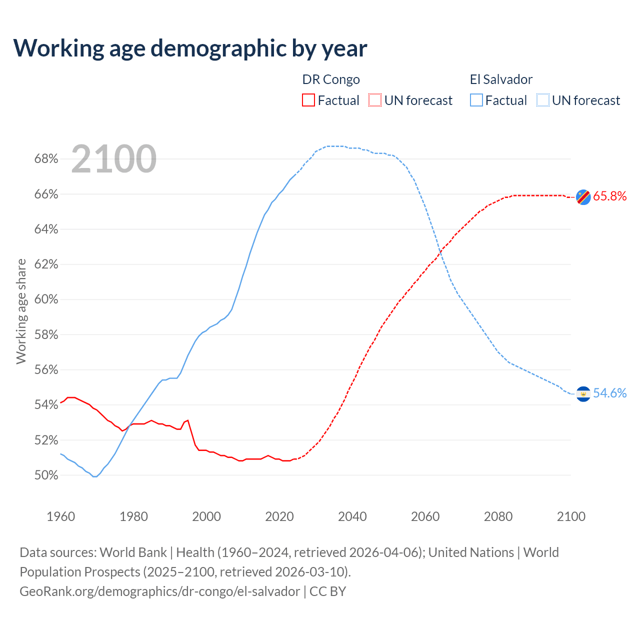 - The DR Congo has 59.8M working age adults (aged 15-64) vs 4.29M in El Salvador.