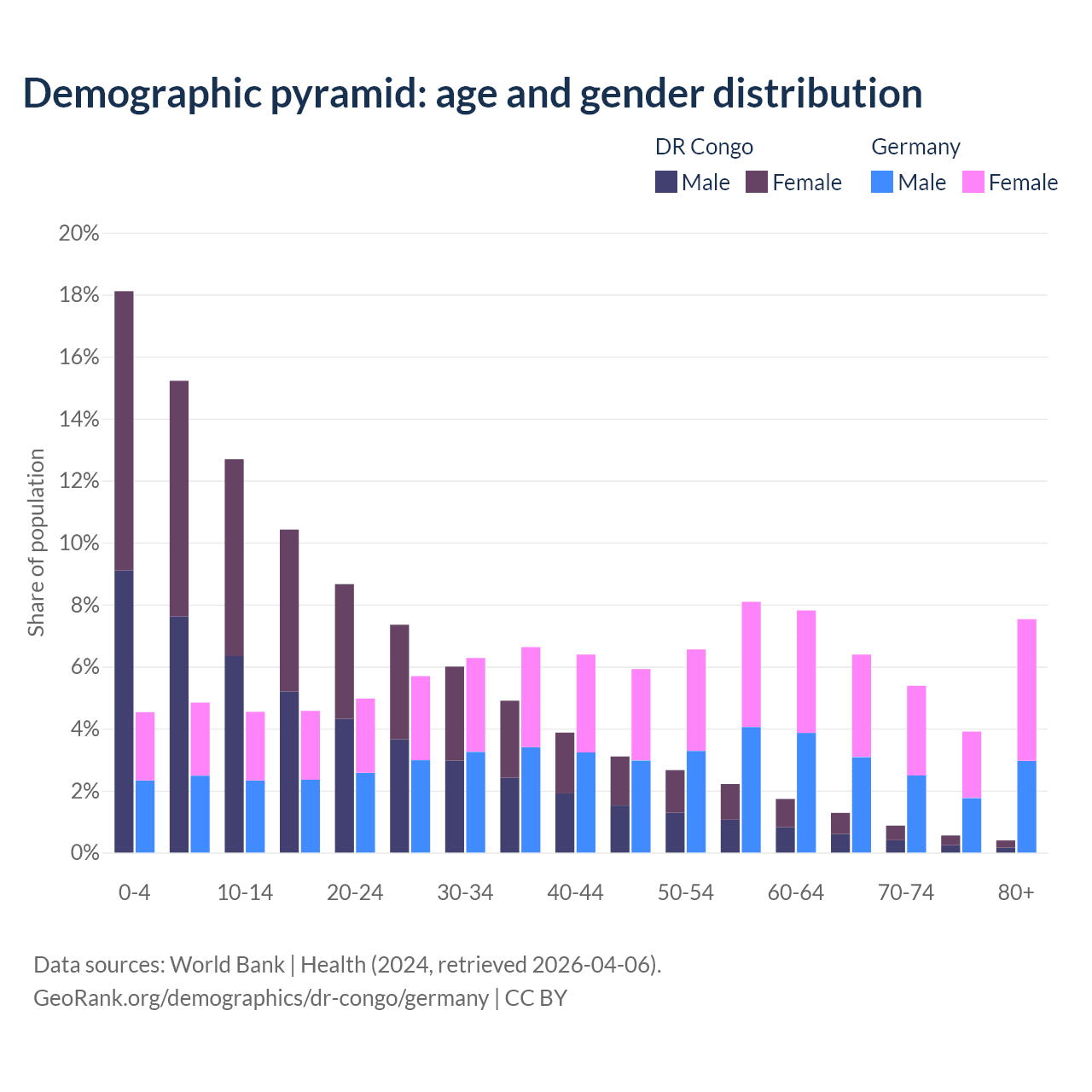 Demographics of the DR Congo compared to Germany: