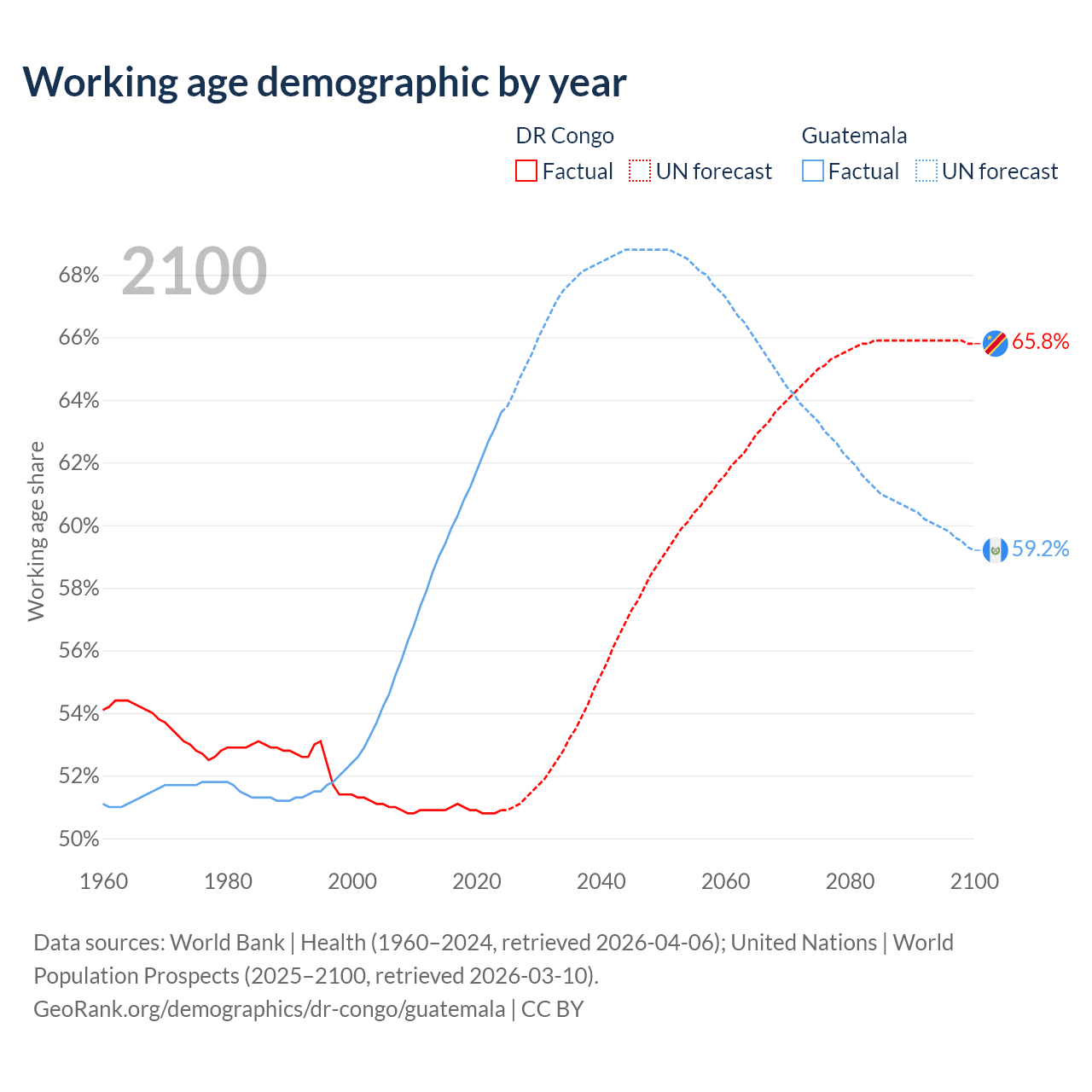 - The DR Congo has 59.8M working age adults (aged 15-64) vs 12.1M in Guatemala.