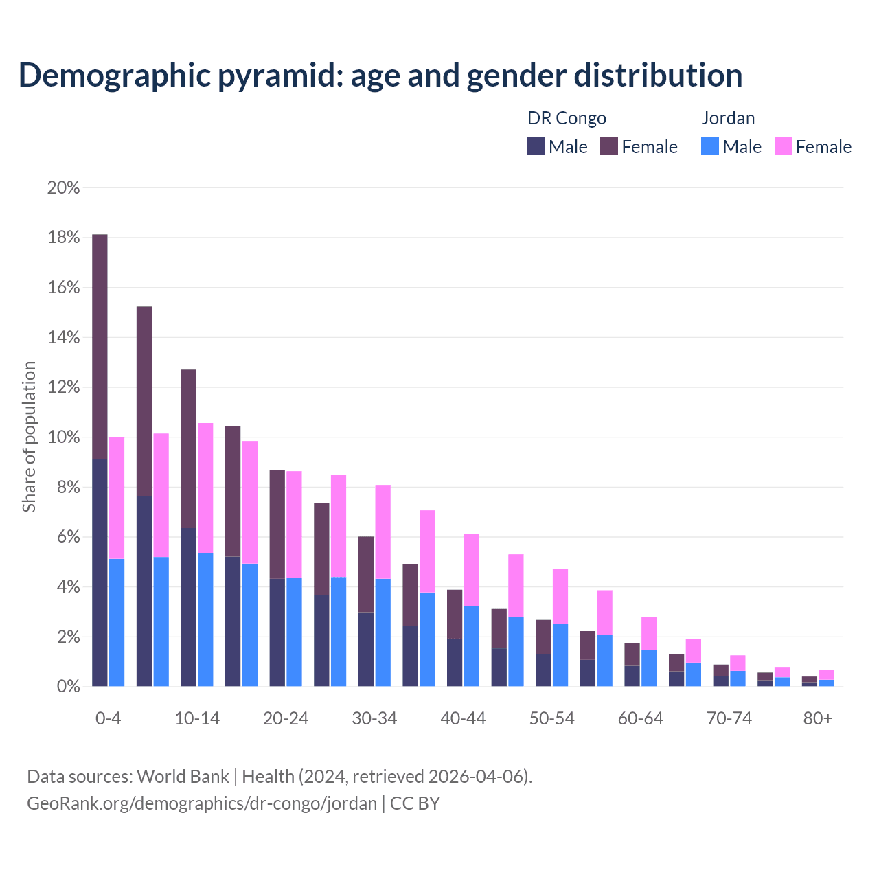 Demographics of the DR Congo compared to Jordan: