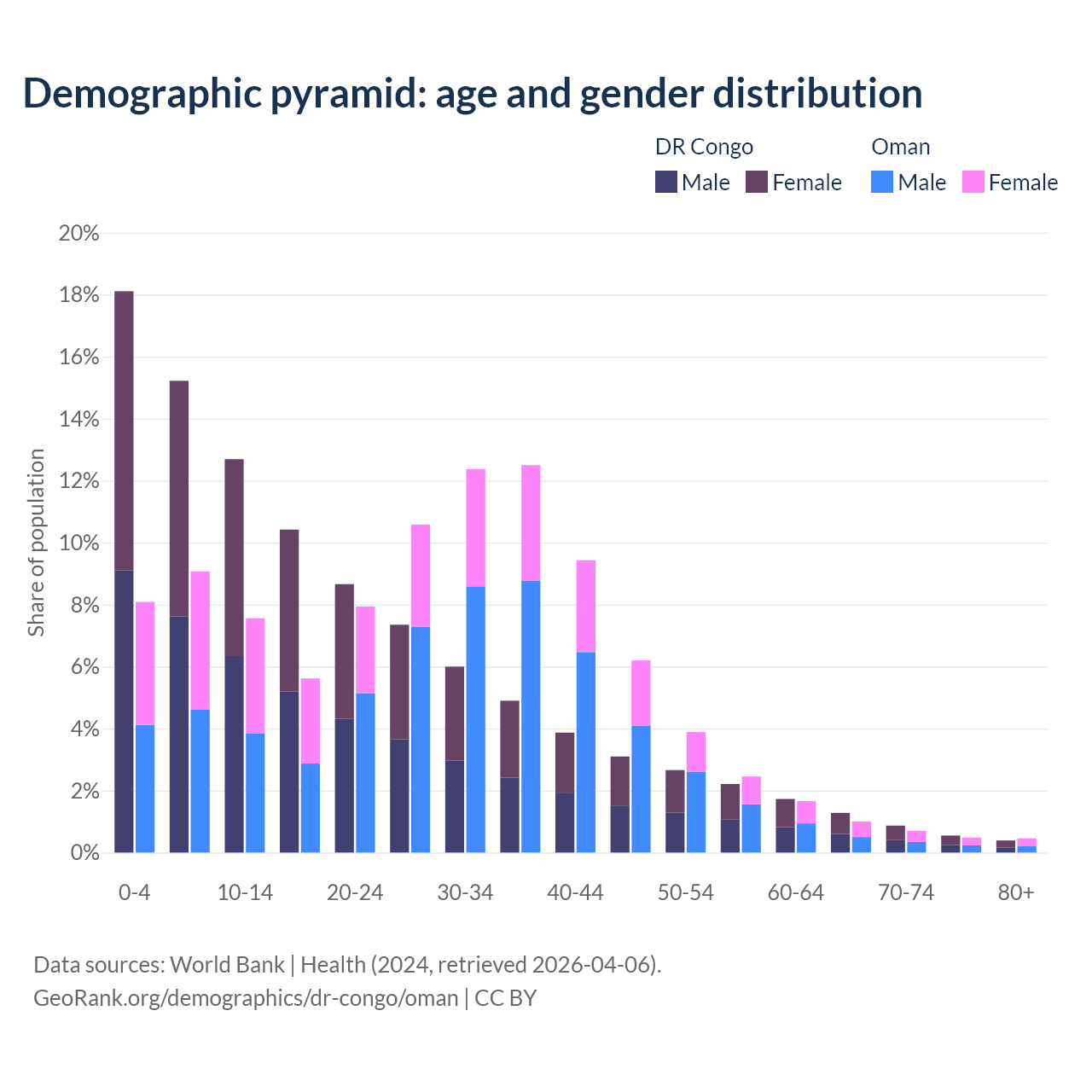 Demographics of the DR Congo compared to Oman: