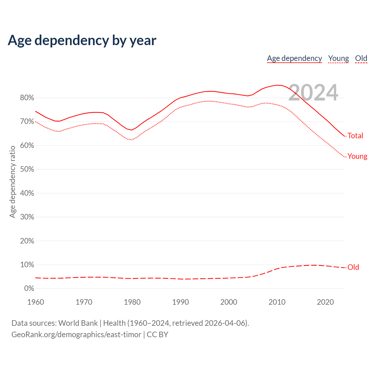 - World Bank | Health (1960–2024, retrieved 2026-04-06)