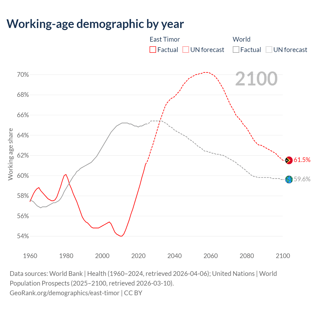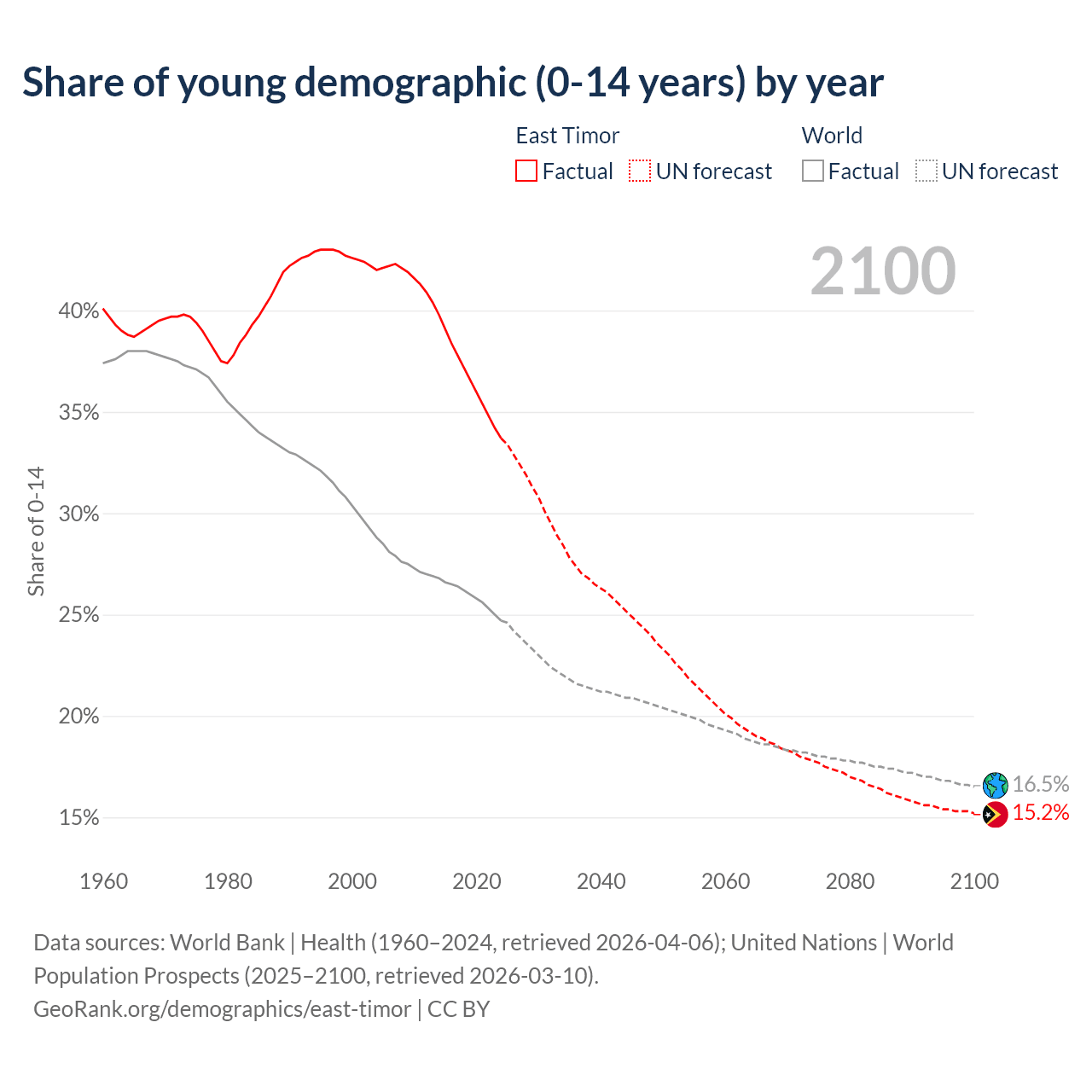 Median age in East Timor, 1960–2100