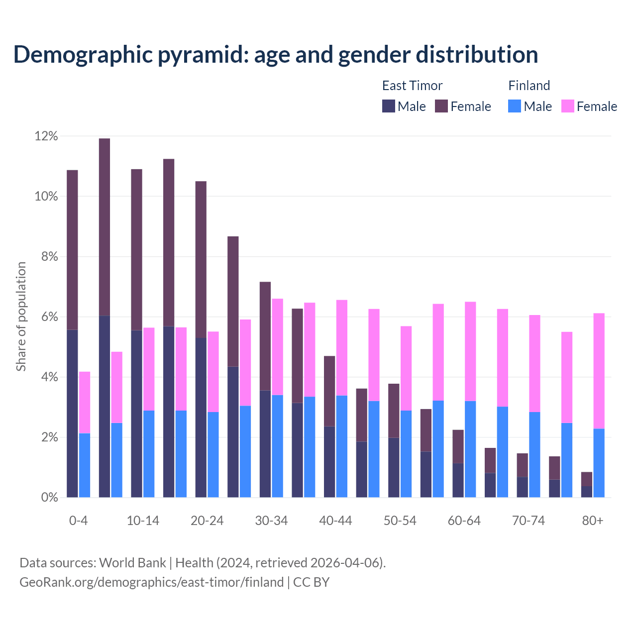 Demographics of East Timor compared to Finland: