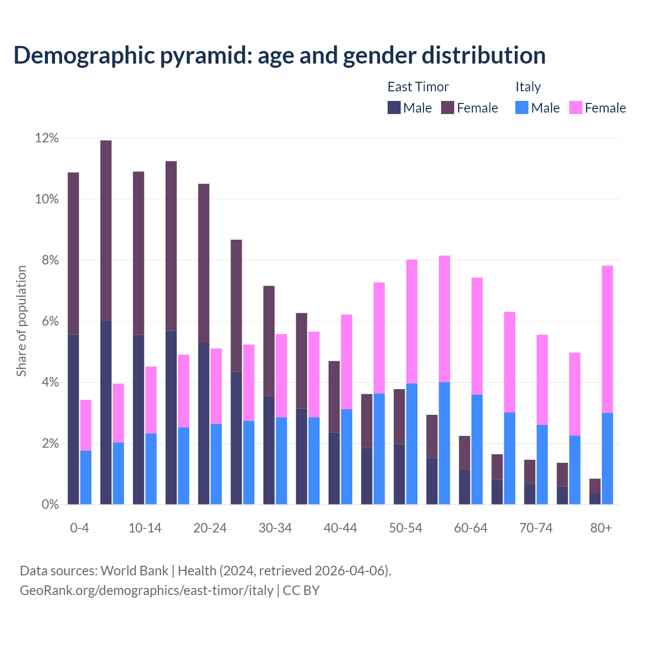 Demographics of East Timor compared to Italy: