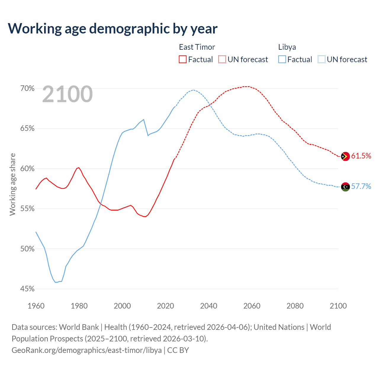 - East Timor has 880K working age adults (aged 15-64) vs 5.11M in Libya.