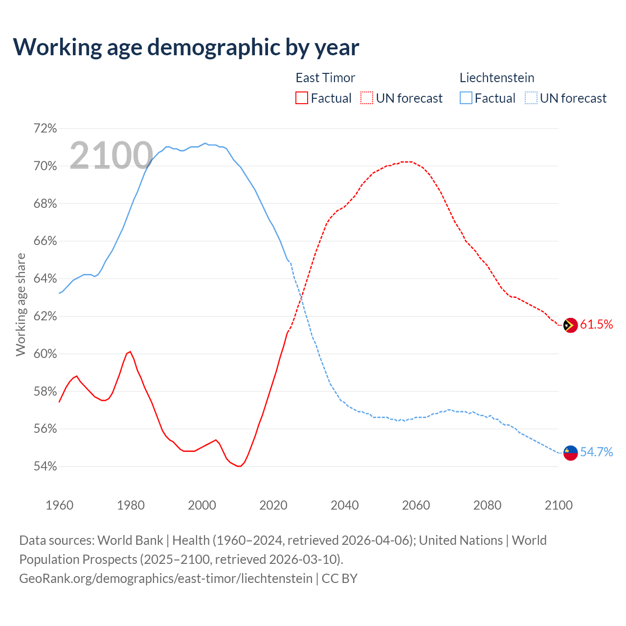 - East Timor has 880K working age adults (aged 15-64) vs 26.7K in Liechtenstein.