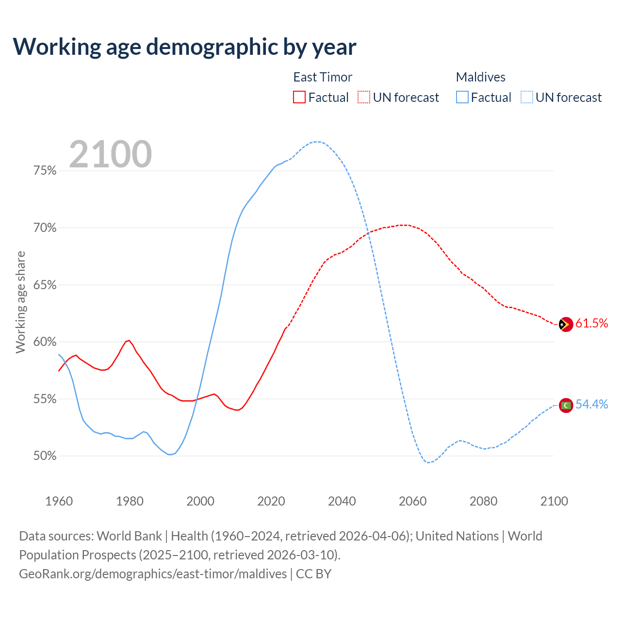 - East Timor has 880K working age adults (aged 15-64) vs 403K in Maldives.