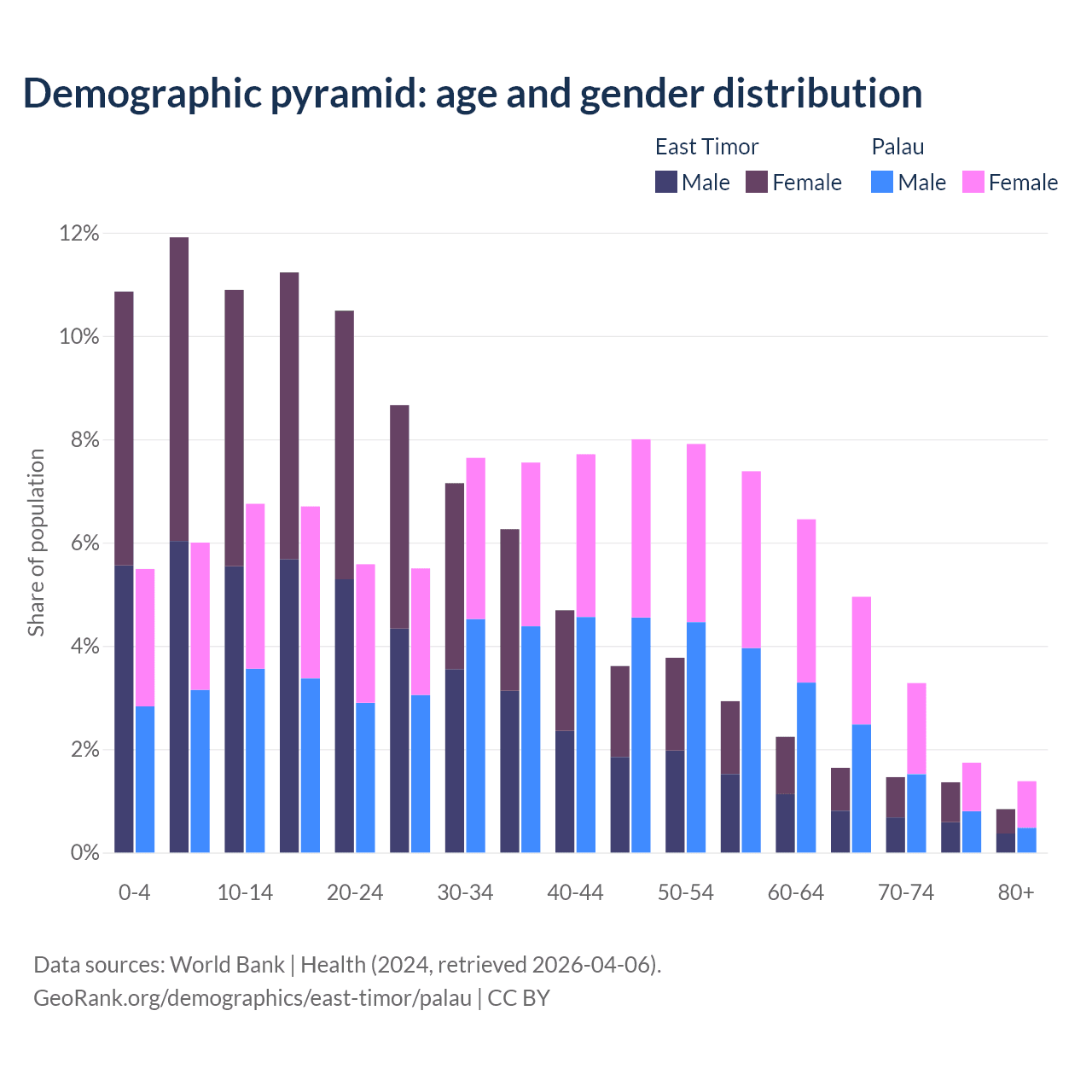 Demographics of East Timor compared to Palau: