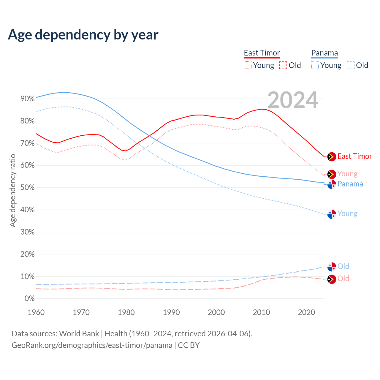- East Timor is ranked 145/196 by median age (oldest to youngest) vs 94/196 for Panama.