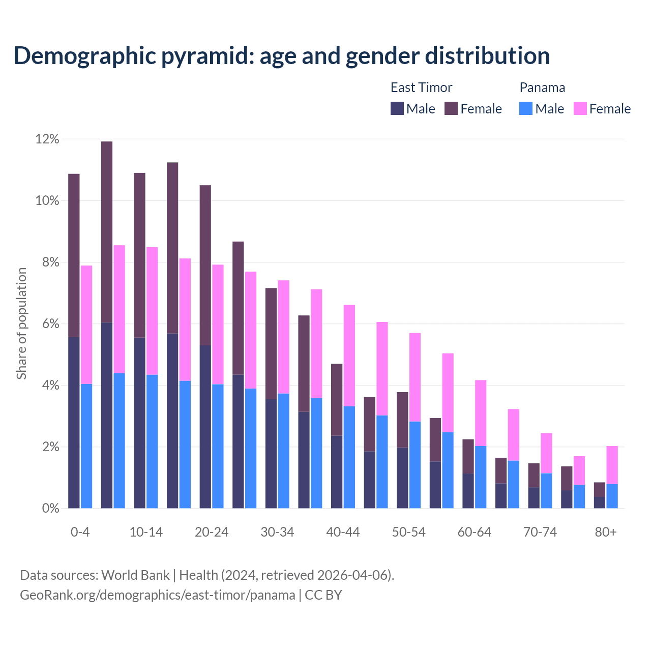 Demographics of East Timor compared to Panama: