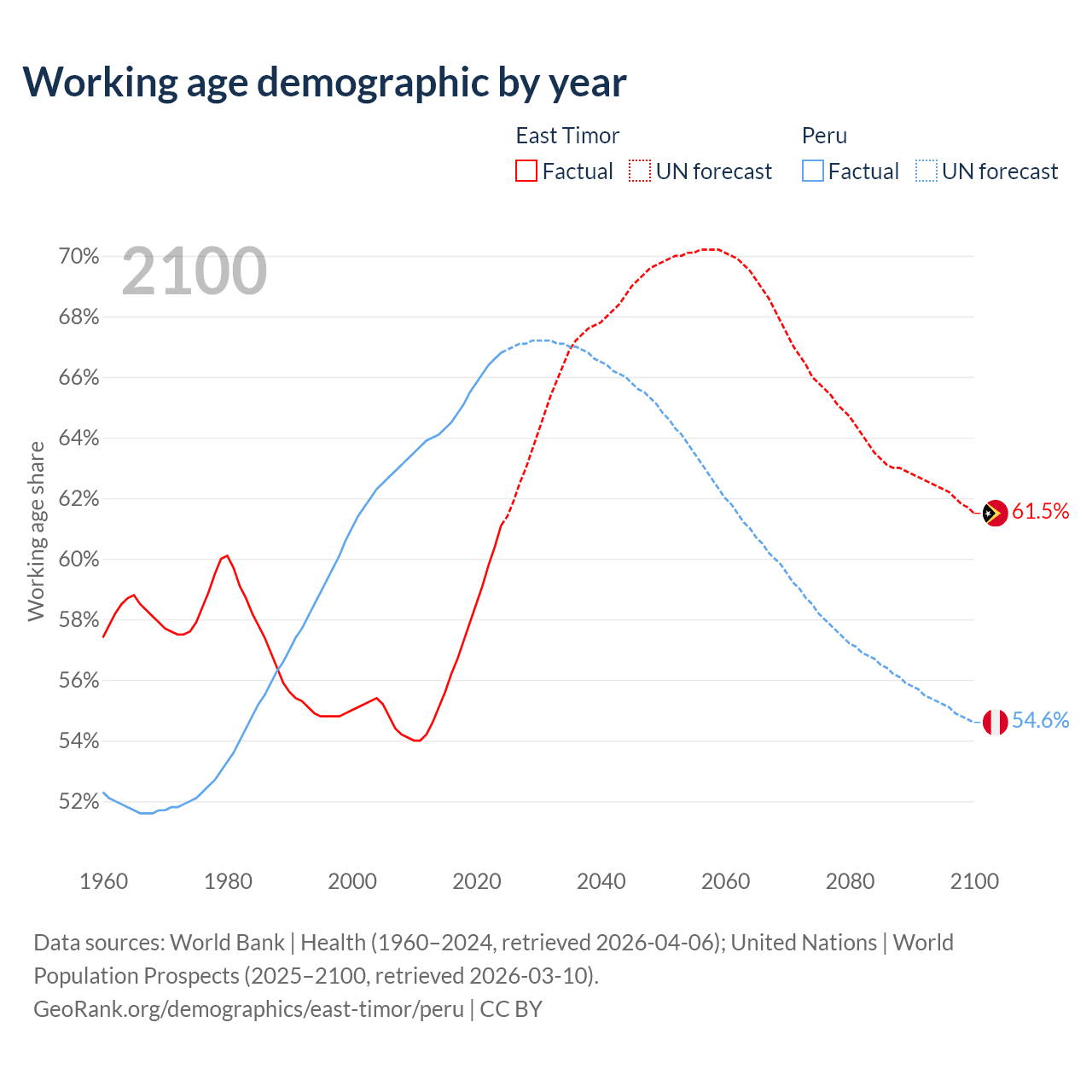 - East Timor has 880K working age adults (aged 15-64) vs 23.4M in Peru.