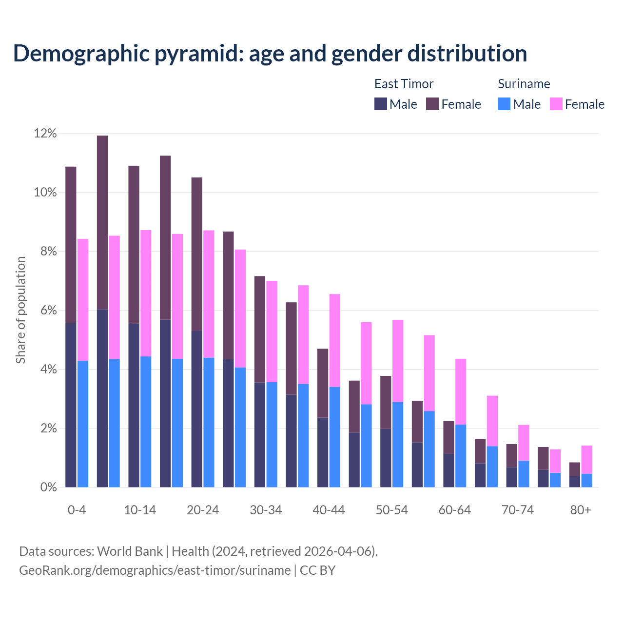Demographics of East Timor compared to Suriname: