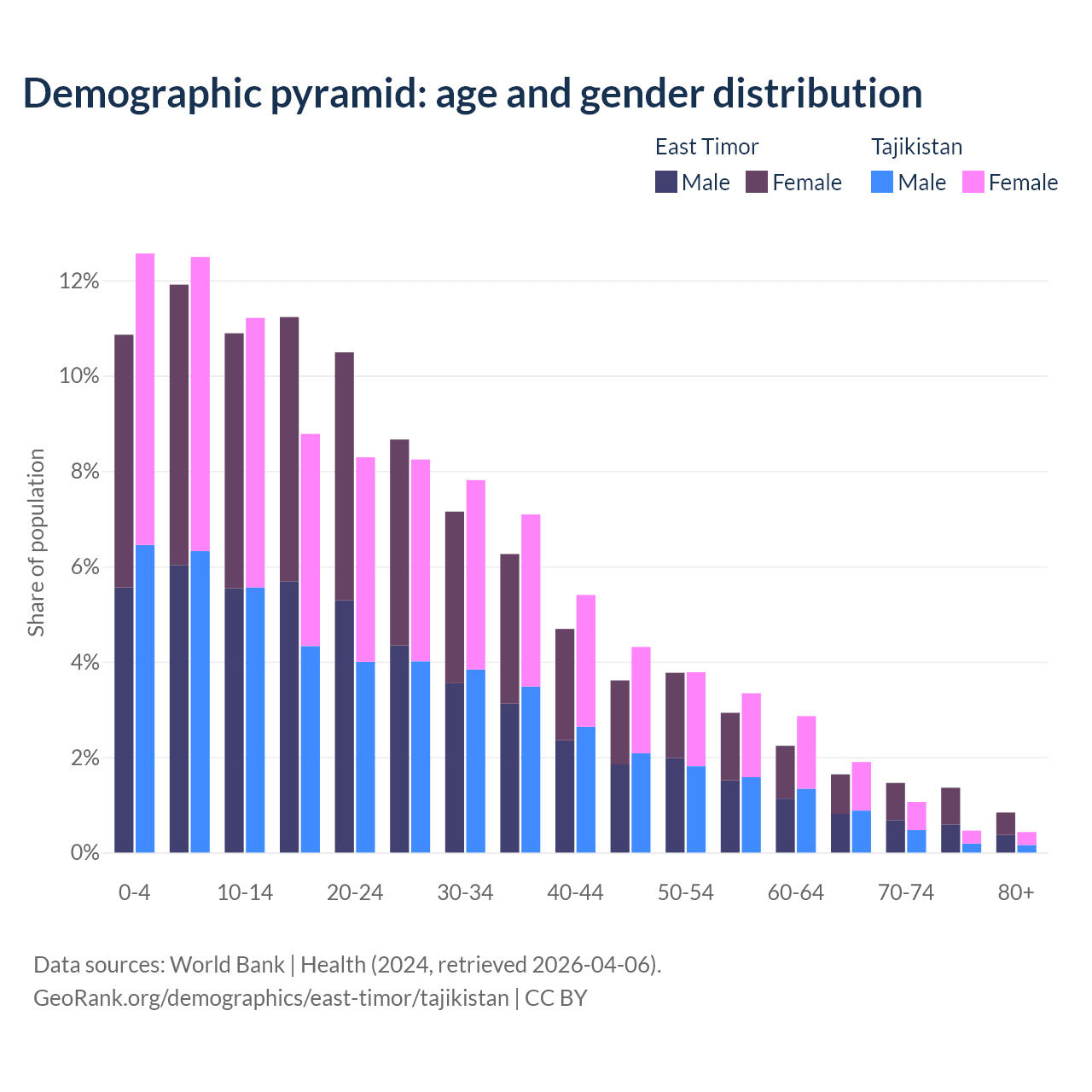 Demographics of East Timor compared to Tajikistan:
