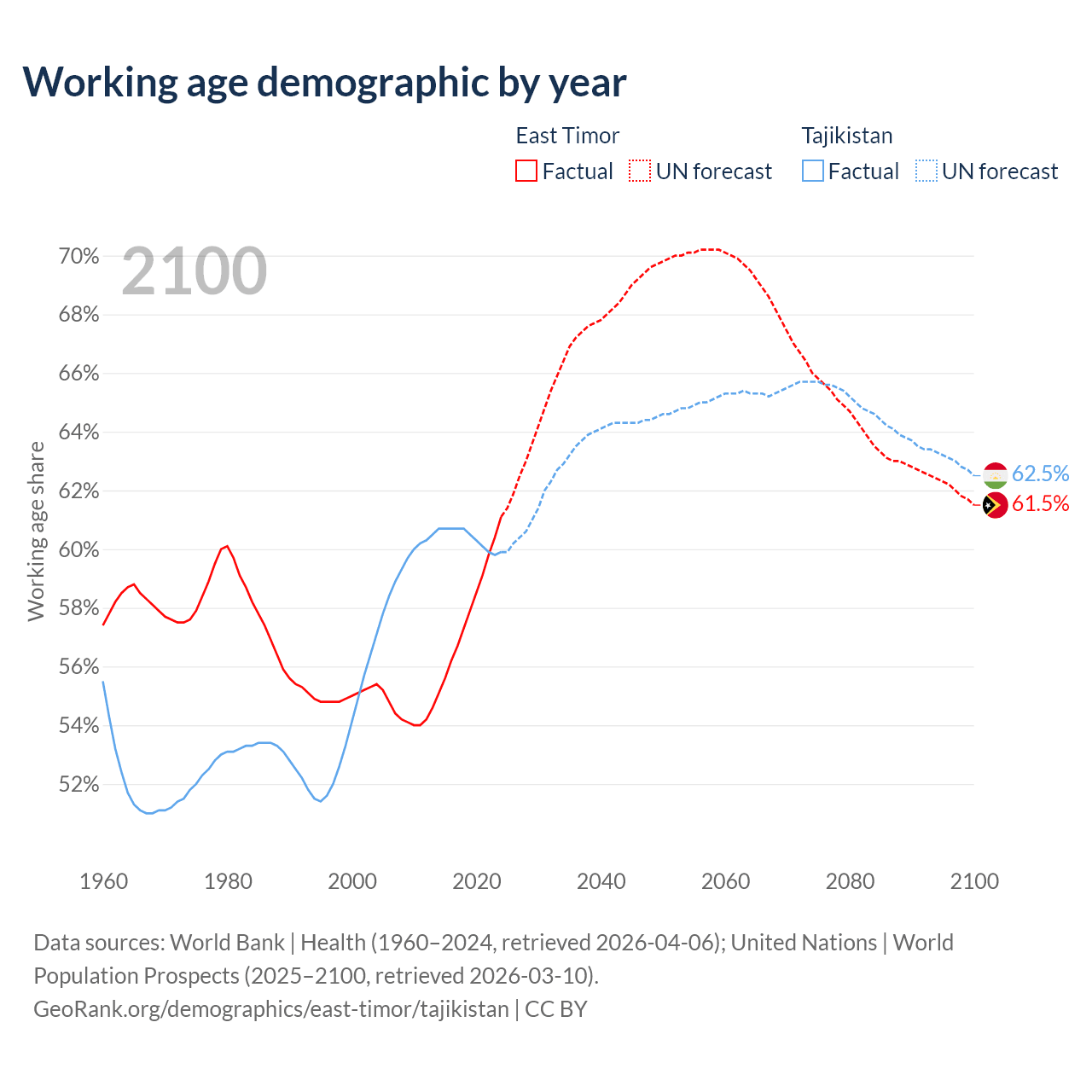 - East Timor has 880K working age adults (aged 15-64) vs 6.61M in Tajikistan.