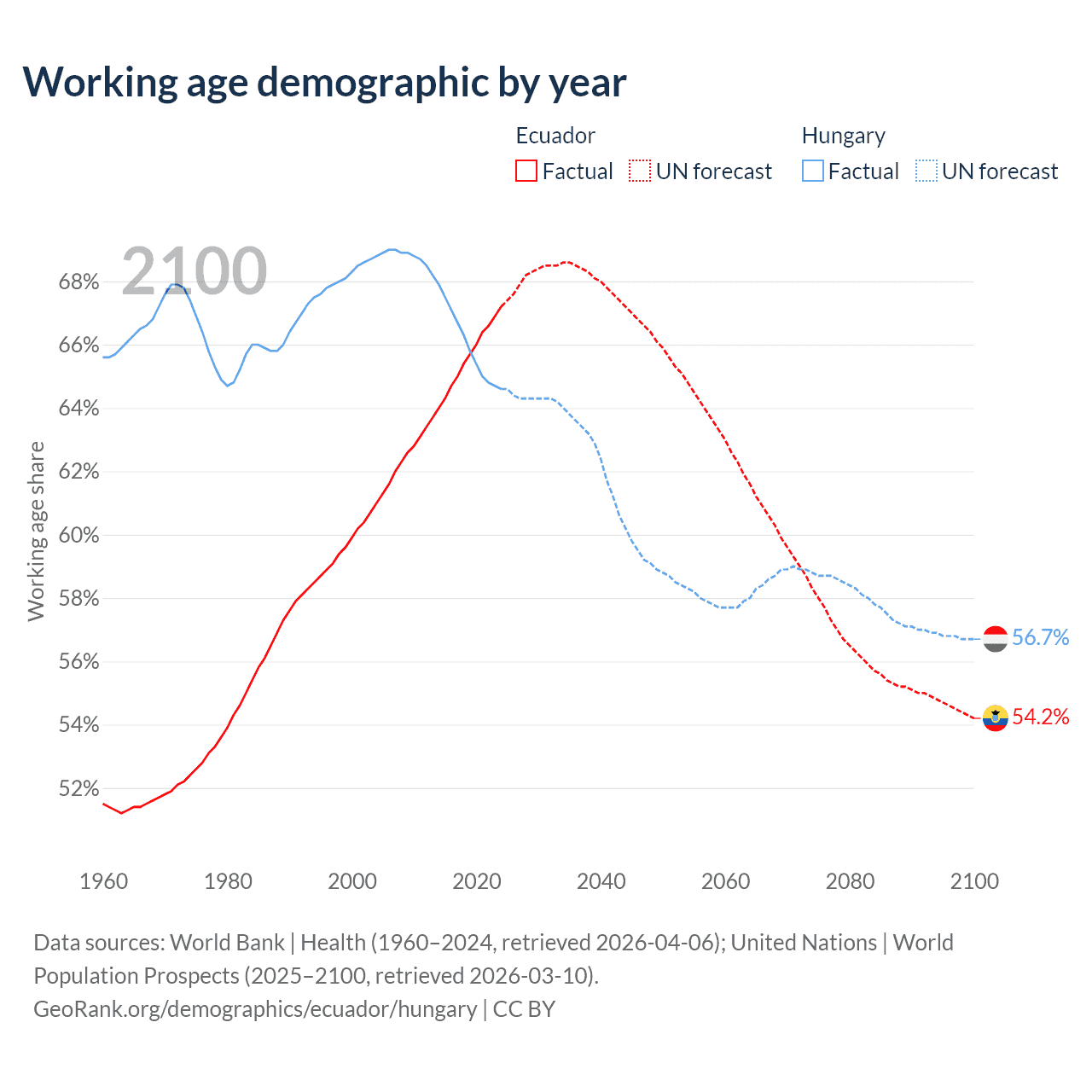 - Ecuador has 12.4M working age adults (aged 15-64) vs 6.12M in Hungary.