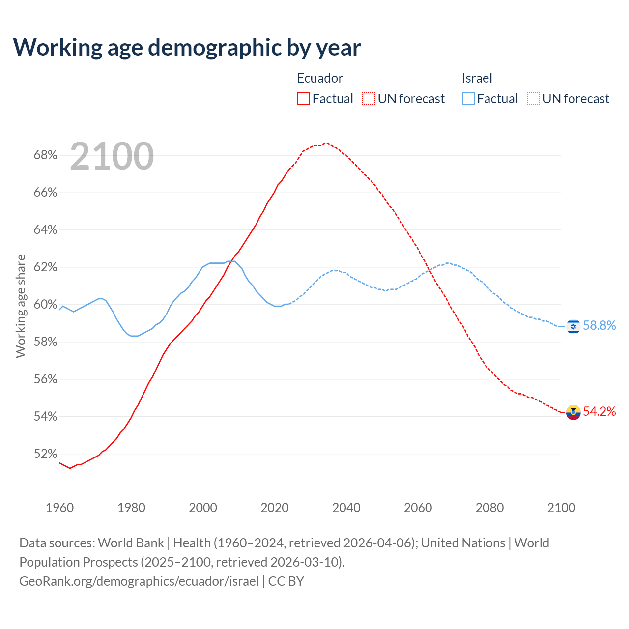 - Ecuador has 12.4M working age adults (aged 15-64) vs 6.18M in Israel.