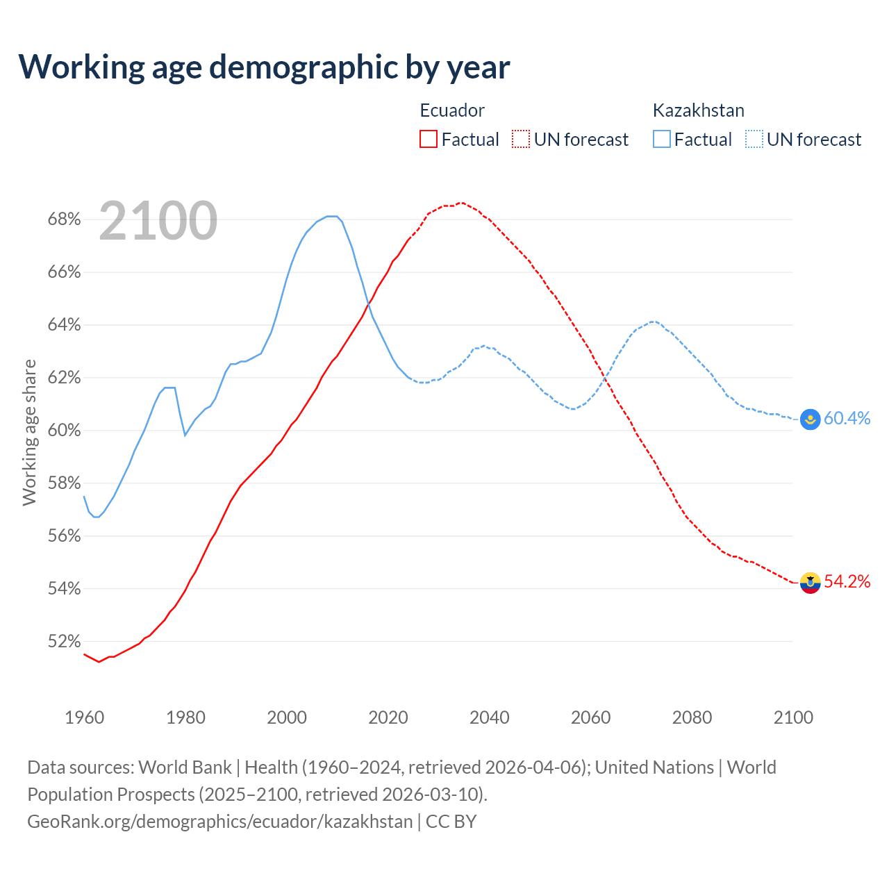 - Ecuador has 12.4M working age adults (aged 15-64) vs 13.1M in Kazakhstan.